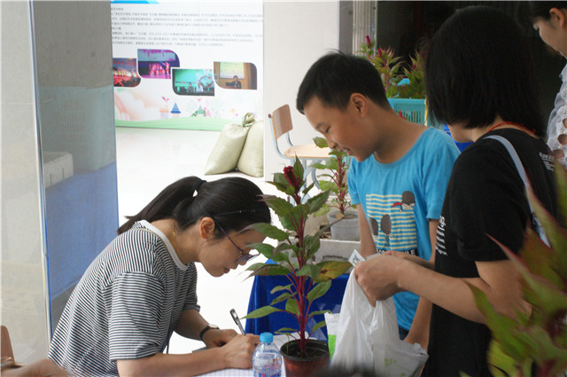 活动一开始,有创意十足精心布置的摊位,有夺人眼球的广告词和价目表,还有玲琅满目的各式花卉,让人不禁眼花缭乱。每个摊位前的老师们都认真负责,使出浑身解数,格外卖力地推销,为了吸引更多的顾客,有的还吆喝起来。五元,十元……虽然已经口干舌燥,但看着越来越多的爱心款,老师们们顾不上休息,尽力用最真挚的语言打动每个顾客, 一手收钱,一手将早已包装好的鲜花递到同学们的手上,并且还不忘对买花的同学说一声“谢谢你”,满眼望去,都是一张张灿烂的笑脸。人群中,有可爱的同学们,也有可亲可敬的老师们,每个人的眼里都带着浓浓的快乐。