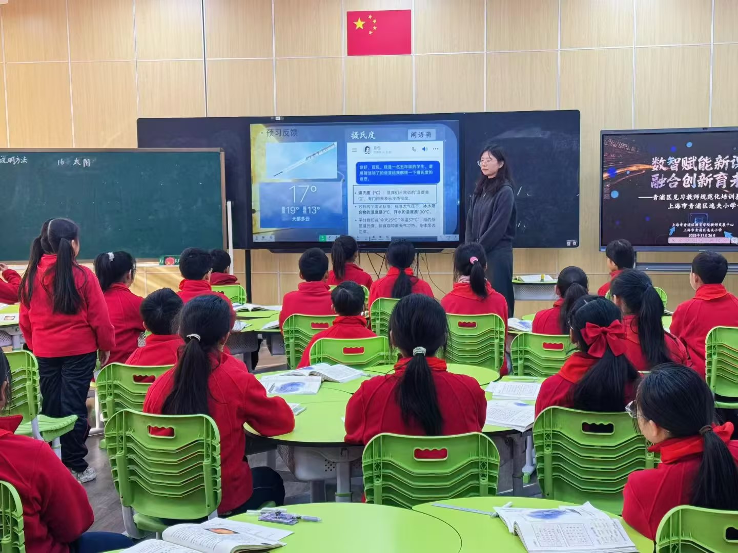 我校姚琳怡老师执教的五年级跨学科课程《太阳》第一课时,展现了数智工具在教学中的精准应用。课堂教学展示由教学处主任兼语文分管蒋一新老师主持。本节课围绕太阳的特点及其与地球的关系,深度融合信息技术手段,引导学生借助“豆包”智能工具、思维导图、视频演示等方式,系统梳理知识结构,直观理解抽象科学概念。学生通过判断“列数字”、“举例子”和“作比较”这三种说明方法,体会其在具体语境中的表达效果,并尝试迁移运用,查找上海中心大厦的资料,以恰当的说明方法进行写作实践。整堂课以思维导图为支架,贯穿“说明白”的核心目标,融合语文表达与科学认知,充分展现了数智化教学在激发学生思维、提升综合素养方面的创新路径。