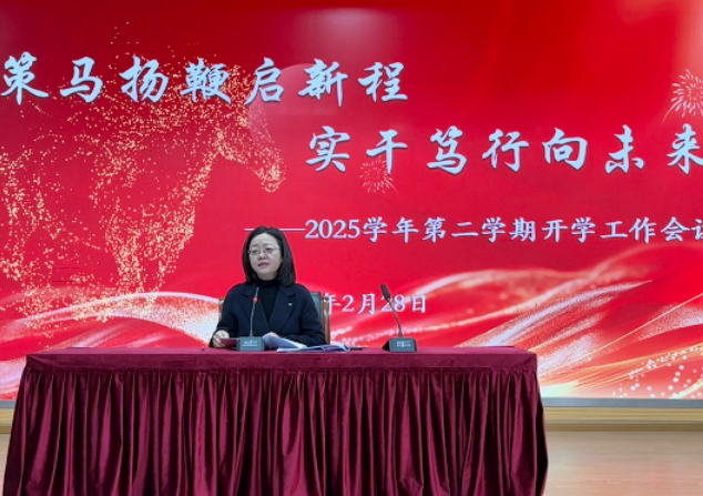 2026年2月28日,全体教师齐聚小剧场,共同参加主题为“策马扬鞭启新程实干笃行向未来”的2025学年第二学期开学工作会议。会议由党支部书记、校长张剑主持。会议伊始,张校长向全体教职工拜年,感谢大家过去一年的辛勤付出,勉励全体教师新学期再接再厉,稳步前行。